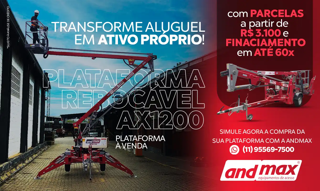 A Plataforma Elevatória Articulada Rebocável AX1200 da Andmax é a escolha perfeita para quem busca um equipamento versátil, seguro e de alta qualidade para locação.